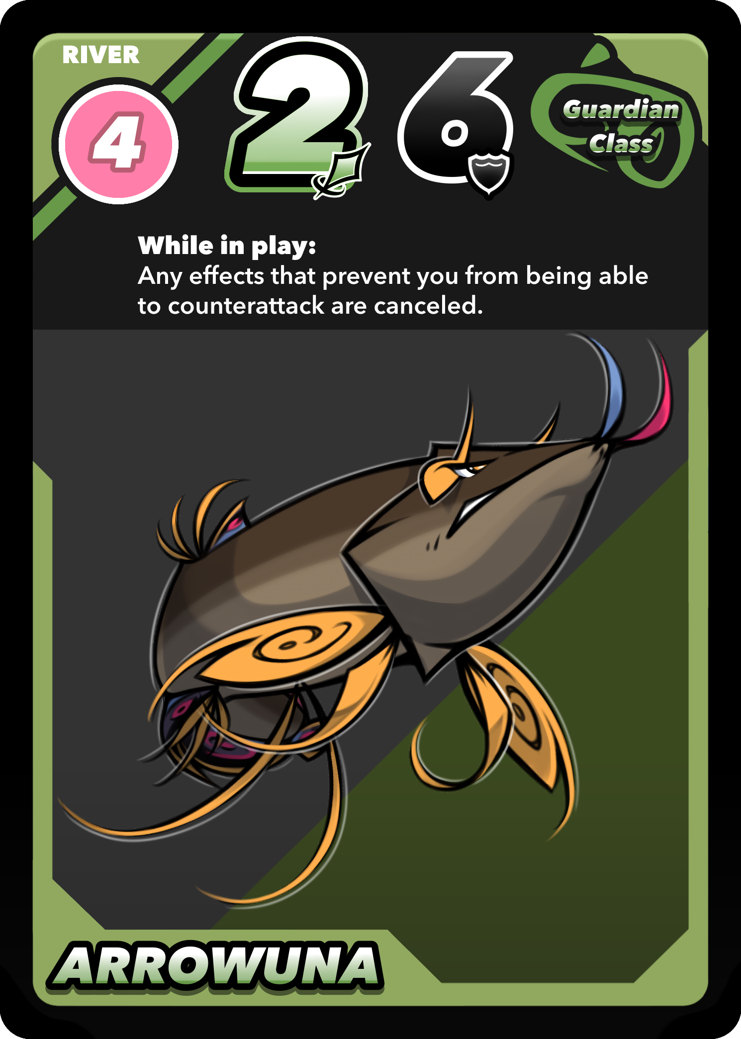 Arrowuna is chief of Azmion River’s police force, always keeping a watchful eye for thugs atop the Kelp Belt. His whiskers poking out from below the sea have become an infamous symbol of the law for gangs living above water. His old friend Durapaima wishes he weren’t so uptight all the time.