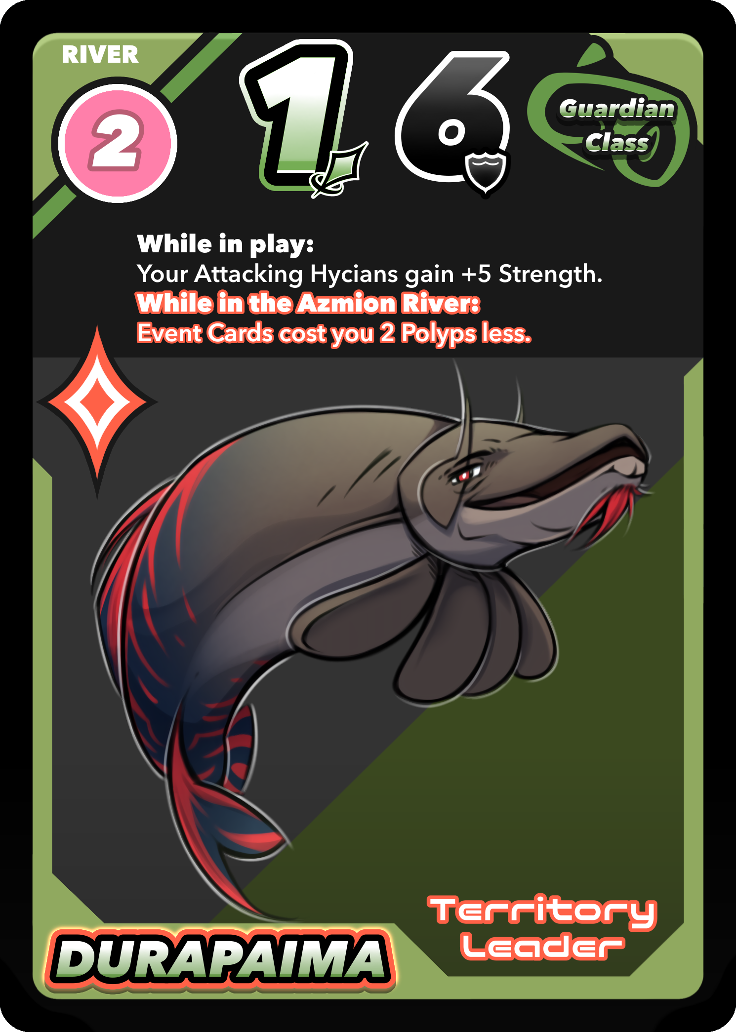 Durapaima is protector of the Azmion River, always making sure that every Hycian in his Territory is living their best life. He’s one of the biggest and oldest Hycians in the entire River Kingdom, and also one of the most relaxed. His approachable aura and kind spirit make him a universally loved leader.